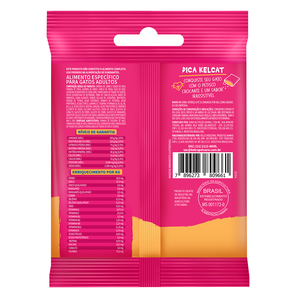 Kelcat Protein Sabor Frango Petisco com 50% de proteína de origem animal, sabor irresistível de frango e livre de transgênicos e corantes artificiais. Nutrição e sabor para agradar seu gato todos os dias.